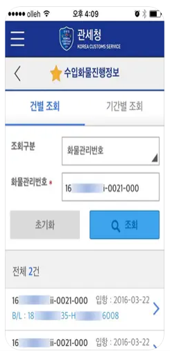 문자 또는 카카오 알림톡 등으로 수입통관보류 메시지가 오면 즉시, 수입화물통관시스템에 접속해 사유를 확인합니다. - 부호 정정 요청하기