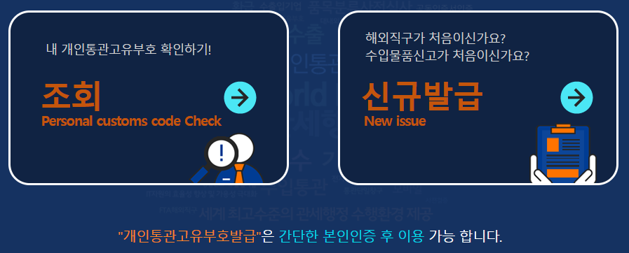 "개인통관고유부호발급"은 간단한 본인인증 후 이용 가능 합니다.