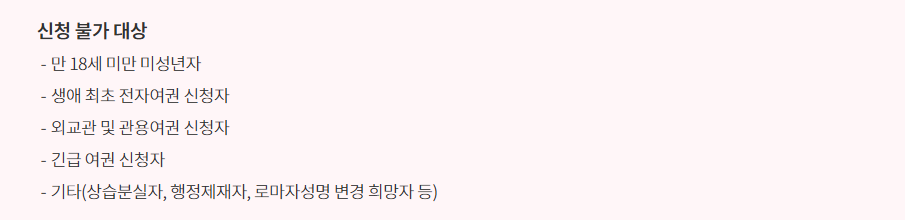 - 미성년자는 반드시 직접 방문 신청만 가능 (온라인 불가)