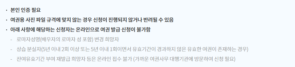 - 여권 분실 횟수 많을 경우 심사 지연될 수 있음