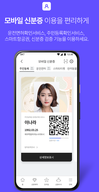 - QR코드와 운전면허 정보가 포함된 디지털 신분증 화면 자동 생성