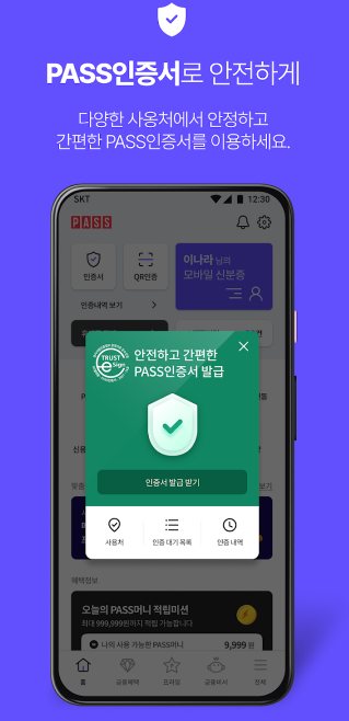 - 패스 앱 설치 ➡ 패스 앱 실행 ➡ 하단 메뉴 인증/보안 탭 클릭