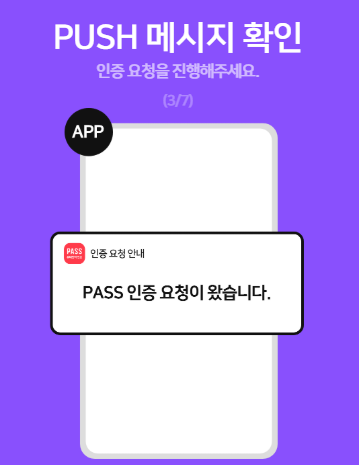 ➡ 이후부터는 각종 인증 시 별도 인증번호 입력 없이 패스 앱 설치만하면 간편하게 본인 확인 가능