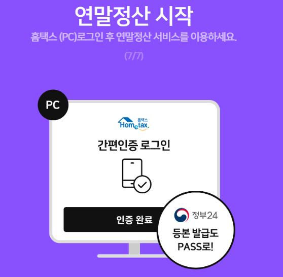 - PASS 인증서로 로그인 ➡ 간이세액 계산, 현금영수증 확인, 종소세 신고 가능