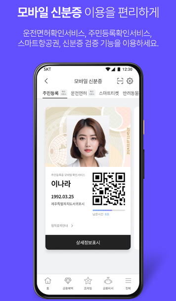 - 운전면허증, 주민등록증 등 정부 인증 디지털 신분증 연동 가능