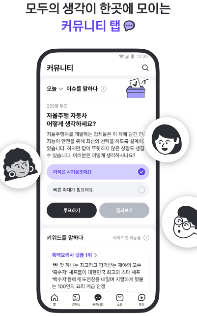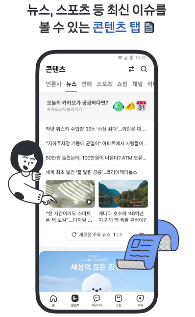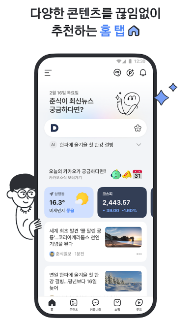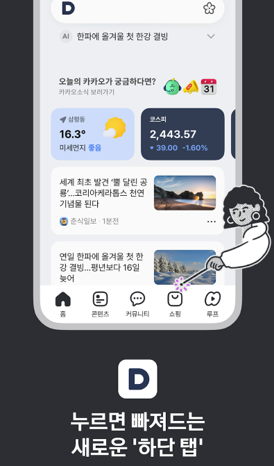 새롭게 개편한 다음앱 하단 탭에서 더 넓어진 콘텐츠 세상을 만나보세요.