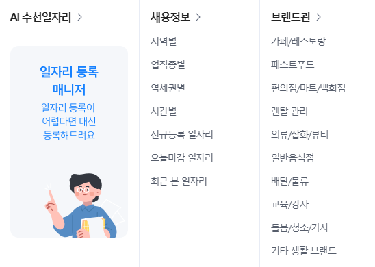 - 장기, 단기 선택 가능: 정규직뿐 아니라 단기알바, 주말근무 등 유연한 일자리 조건도 많음