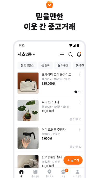 당신 근처의 동네 커뮤니티. 중고 거래부터 동네 정보까지, 이웃과 함께해요. 가깝고 따뜻한 당신의 근처를 만들어요.