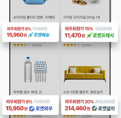 - 전용 할인상품 + 전용 할인쿠폰 (와우회원만 노출되는 가격 있음)