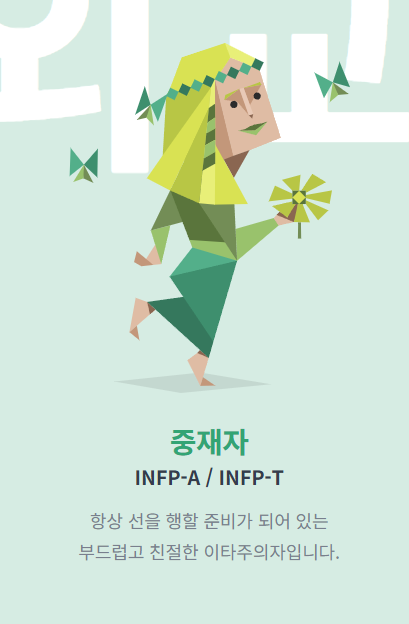 - INFP: 작가, 상담가, NGO 활동가