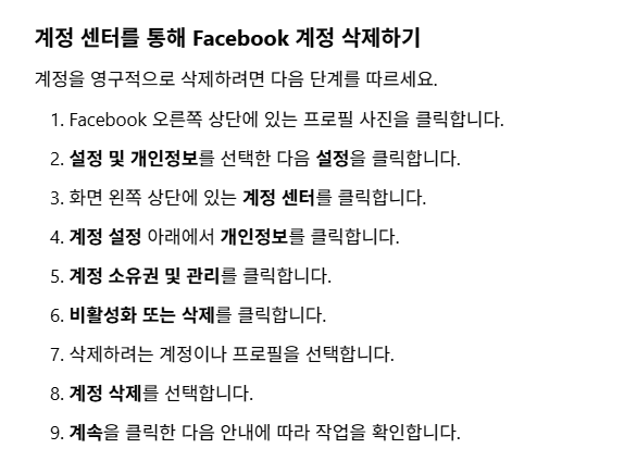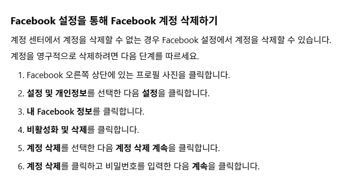 ➡ 페이스북 탈퇴하는 방법을 완료한 후에도 남아 있는 정보가 걱정된다면, 이 절차까지 반드시 마무리해 주세요.