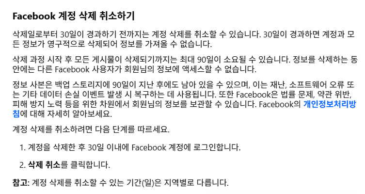 페이스북 탈퇴 후 개인정보 완전 삭제 요청 방법